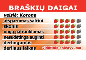 - Vidutinio ankstyvumo, tipiški „desertiniai“ širdies formos, šiek tiek pailgi ir intensyviai raudoni, lengvai blizgūs vaisiai.