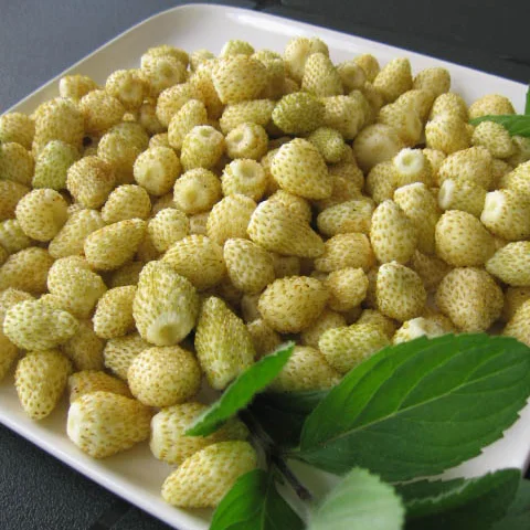 - vaisiai su neįprasta geltonai kremine spalva ir “auksinėmis” sėklomis, labai skanūs;